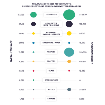 West London Waste conducts waste composition analysis on a rolling 15-month basis to better understand the waste patterns, seasonality and to identify and prioritise the key areas. From this, we know that food waste makes up the largest proportion of waste in black bags. Food waste also has the largest embodied as a whole. Food production and consumption are responsible for around 30% of global carbon emissions. This is why reducing and recycling food waste is a key priority. We have also been focusing on textiles and absorbent hygiene products (AHP) in recent years as they are also carbon-intense materials. Helping residents to reduce waste and remove as much of them out of black bags, and making the most of what is disposed of are crucial steps toward decarbonising our community.