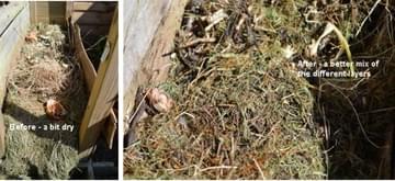 Until the end of May we’re adopting Sarah’s, (our Waste Minimisation Co-ordinator) compost heap and putting it back into active service – with some help from a few compost experts including you!